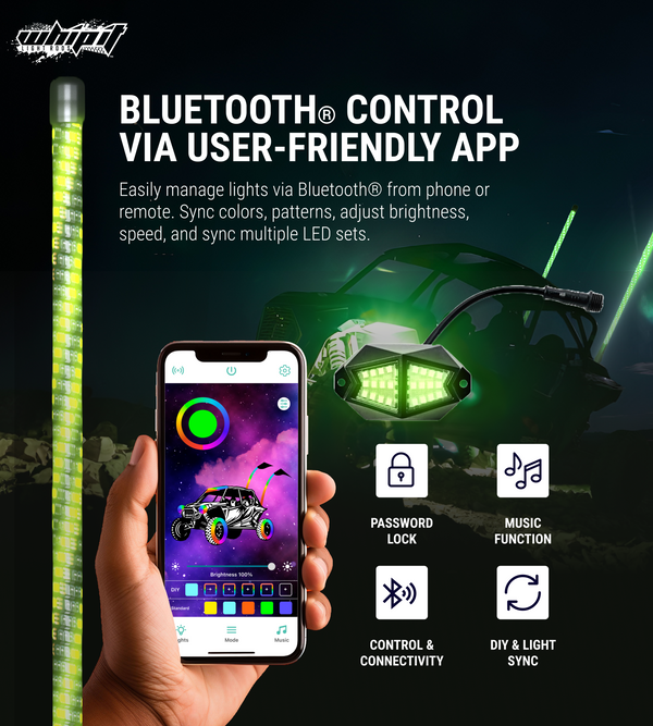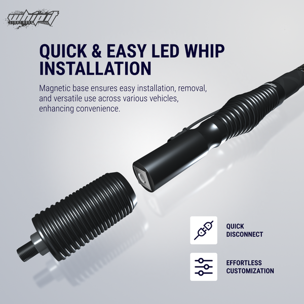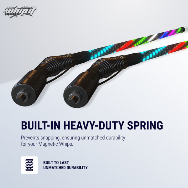 Experience the next level of convenience and performance with our MagLink LED Whips, featuring an innovative magnetic base for effortless quick-release mounting. Built for serious off-roaders, these whips offer 300 vibrant colors and 200 dynamic preset patterns, all easily controlled via Bluetooth® app or dedicated remote.