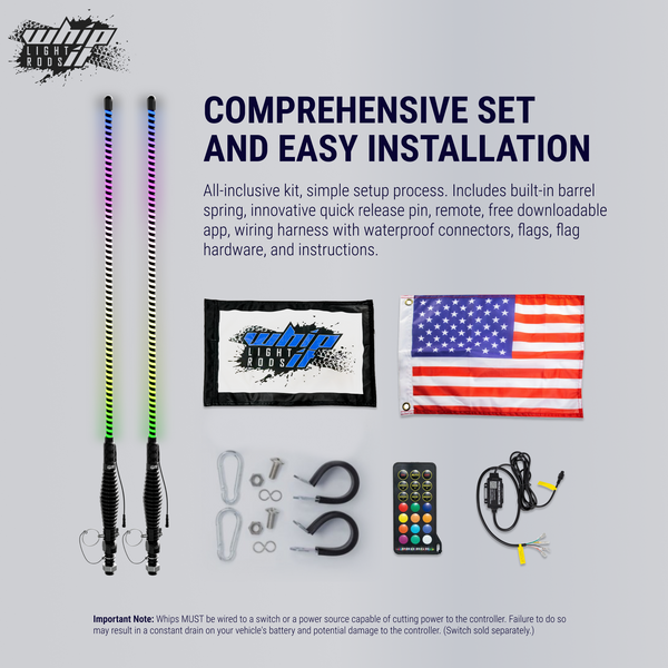These exceptional LED whips not only offer all the premium features of our top-of-the-line Light Rod but also come with a dedicated remote control and an upgraded Bluetooth controller for seamless integration with our free, easy-to-use App. Experience the convenience of controlling your LED whips directly from your phone and step up your lighting game.