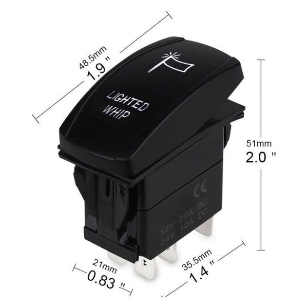Take full control of your LED whips with our LED Whip Rocker Switch and Wiring Harness. Designed for UTVs, ATVs, and off-road vehicles, this switch allows you to easily turn your LED whips on or off with a simple flip.